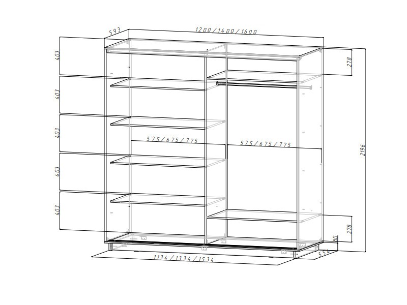 Размер ШхВхГ: 1200х2196х593 мм