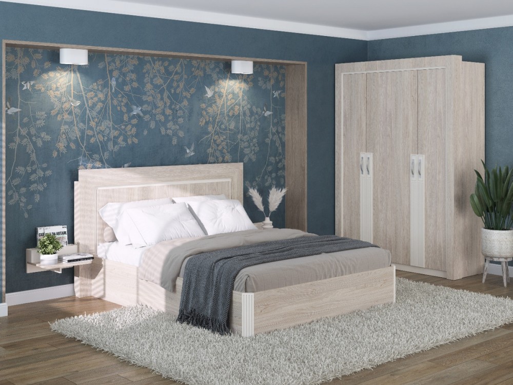 Цена за комплект: Мод. 1.1 Кровать 1,4 без орт.осн, Ортопедическое основание сборное 1,4, Мод. 8 Шкаф четырехдверный, Мод. 3 Тумба прикроватная подвесная - 2 шт